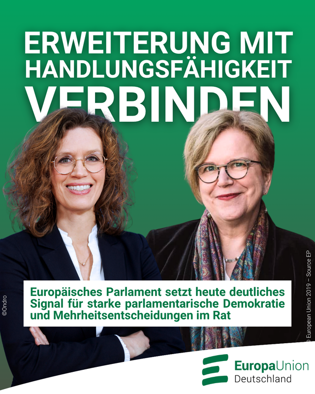 Das Europäische Parlament setzte heute ein deutliches Signal für starke parlamentarische Demokratie und Mehrheitsentscheidungen im Rat. Andrea Wechsler MdEP, Präsidentin der Europa-Union Deutschland, und Gaby Bischoff MdEP, Vizepräsidentin der Europa-Union Deutschland und Vorsitzende der Spinelli Group, befürworten die Abstimmung des Europäischen Parlaments.