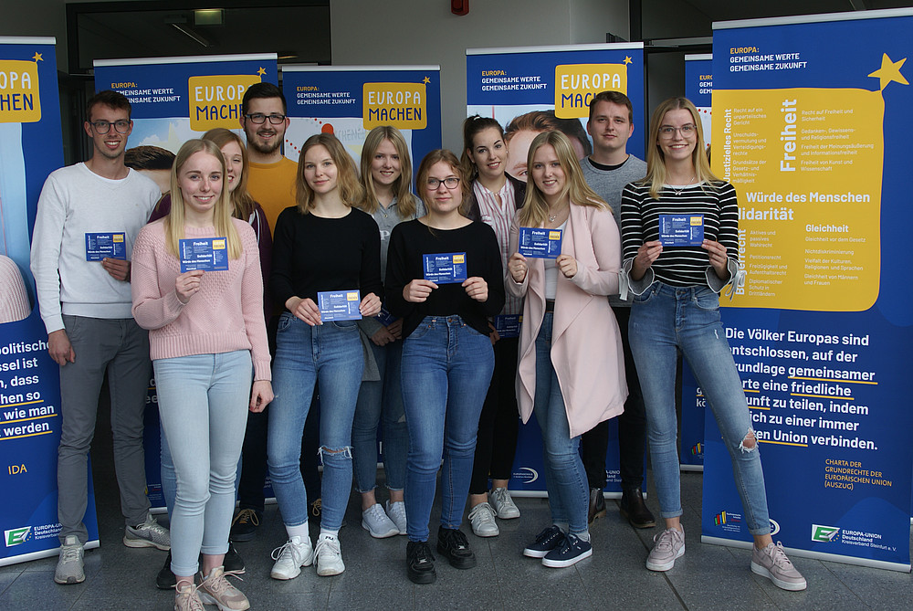 Neben dieser dreiwöchigen Aktion lud der EUD-Kreisverband gemeinsam mit dem Europe-direkt-Informationszentrum Steinfurt zu einem Politik-Talk mit allen Kandidaten ein und führte in gleich mehreren kleineren Orten des Kreises Steinfurt erfolgreich Küchentischge-spräche über Europa und über die Ziele der EUD-Kampagne „EuropaMachen“ durch.