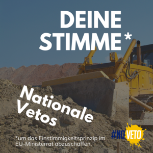 Im Rahmen der #NoVeto Kampagne rufen Europa-Union, JEF und weitere Partner auf, eine Petition an die Mitglieder des Plenums der Konferenz zur Zukunft Europas zu zeichnen. Die Petition fordert, die Abschaffung des Einstimmigkeitsprinzips im Rat der Europäischen Union (EU) und die Einführung von Mehrheitsentscheidungen im Abschlussbericht der Konferenz zur Zukunft Europas zu verankern.
