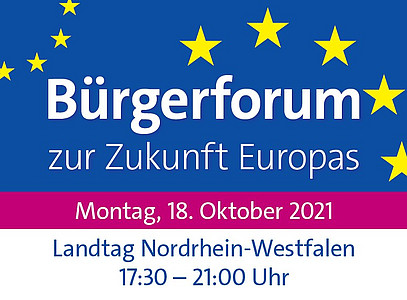 Beteiligen Sie sich an diesem offenen Dialog über Europas Zukunft. Die Ergebnisse dieses Bürgerforums werden in die Beratungen über die Vorschläge zur Reform der Europäischen Union einfließen. Reden Sie mit über Europas Zukunft: am Abend des 18. Oktober 2021 im Landtag von Nordrhein-Westfalen!