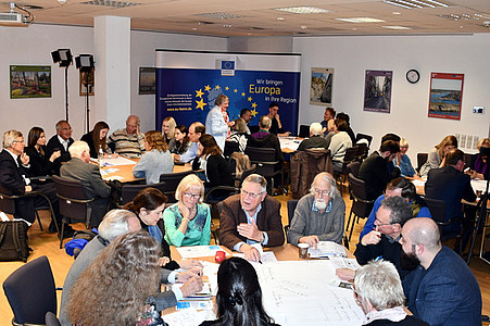Am Donnerstag, 21. November 2019 veranstaltete die Europa-Union Bonn/Rhein-Sieg in Zusammenarbeit mit den Jungen Europäischen Föderalisten (JEF) Bonn und der Europa-Union NRW e.V. und mit Kooperationspartnern ein World-Café zum Thema: "Die finnische Ratspräsidentschaft - für ein klimaneutrales, digitales, starkes und gerechtes Europa."